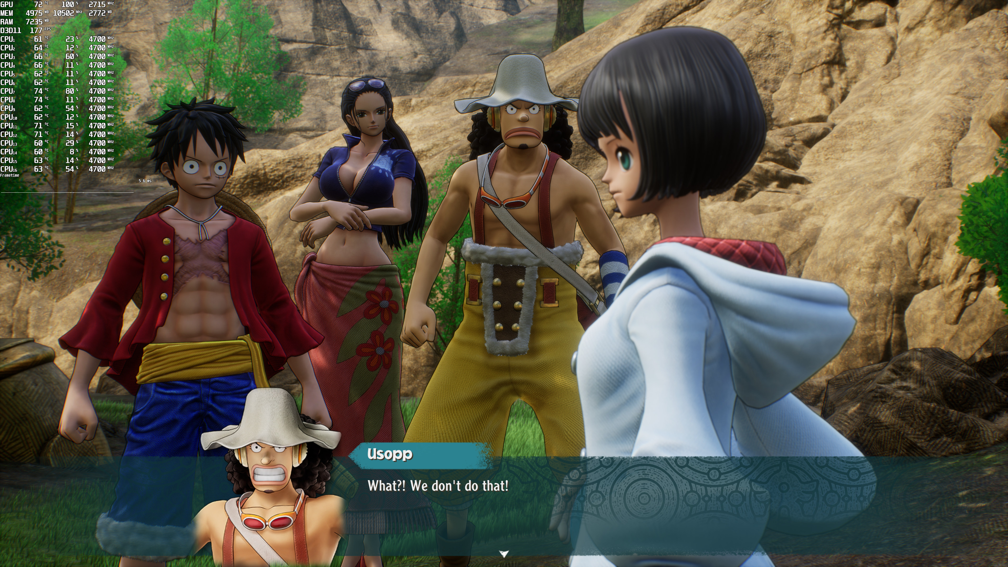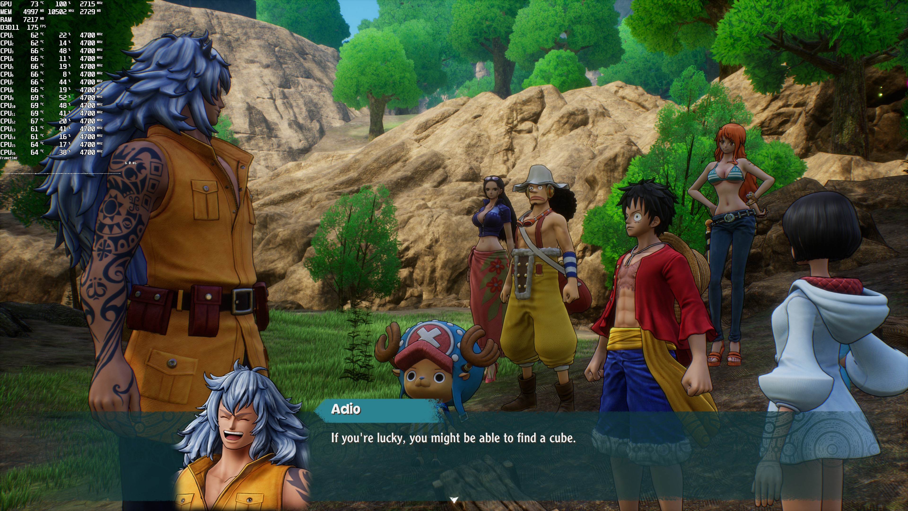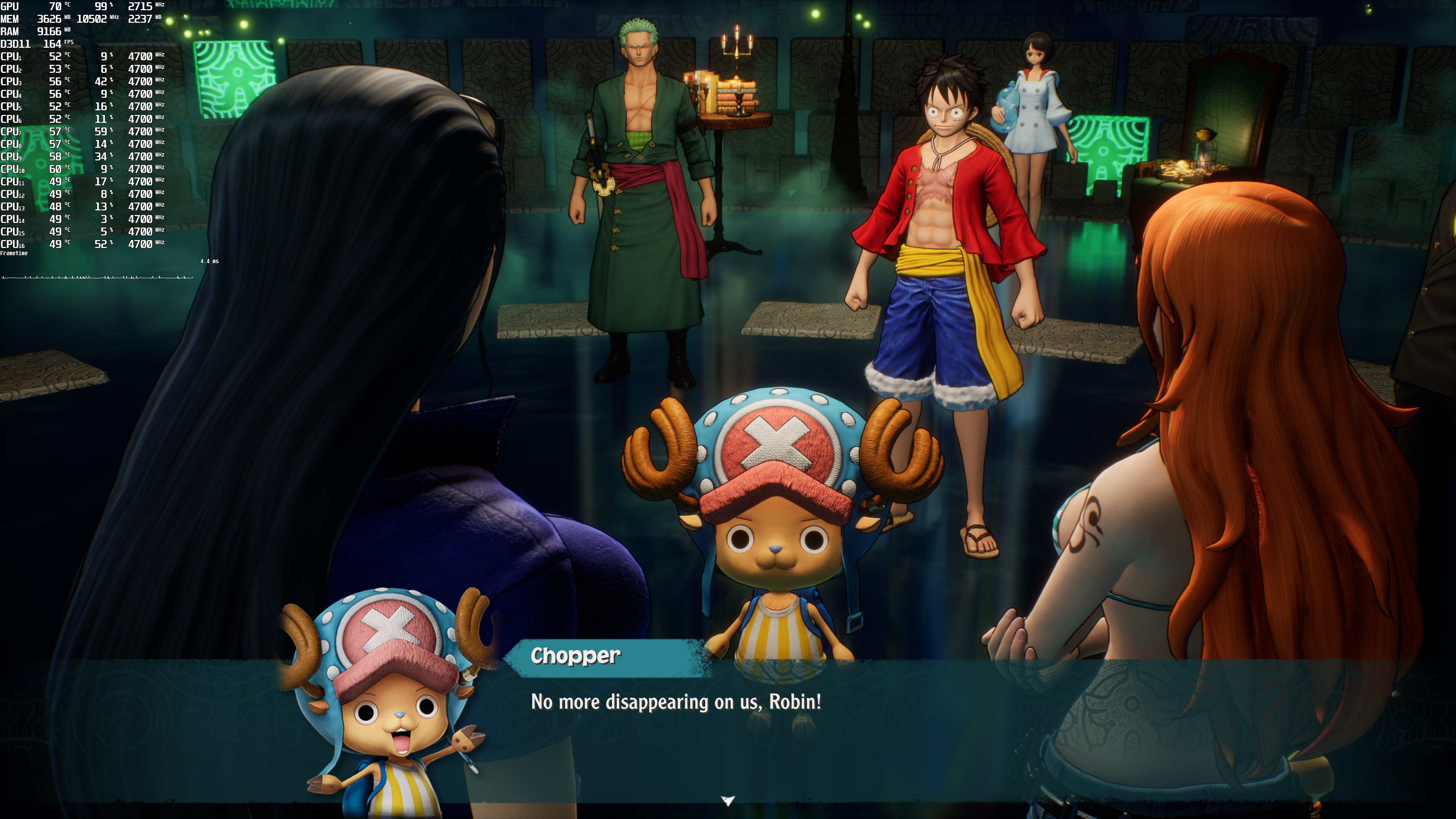 One Piece Odyssey does not feature any built-in benchmark tool. Thus, for our benchmarks, we used Adio’s House area. That area appeared to be one of the most demanding ones, making it ideal for our tests.