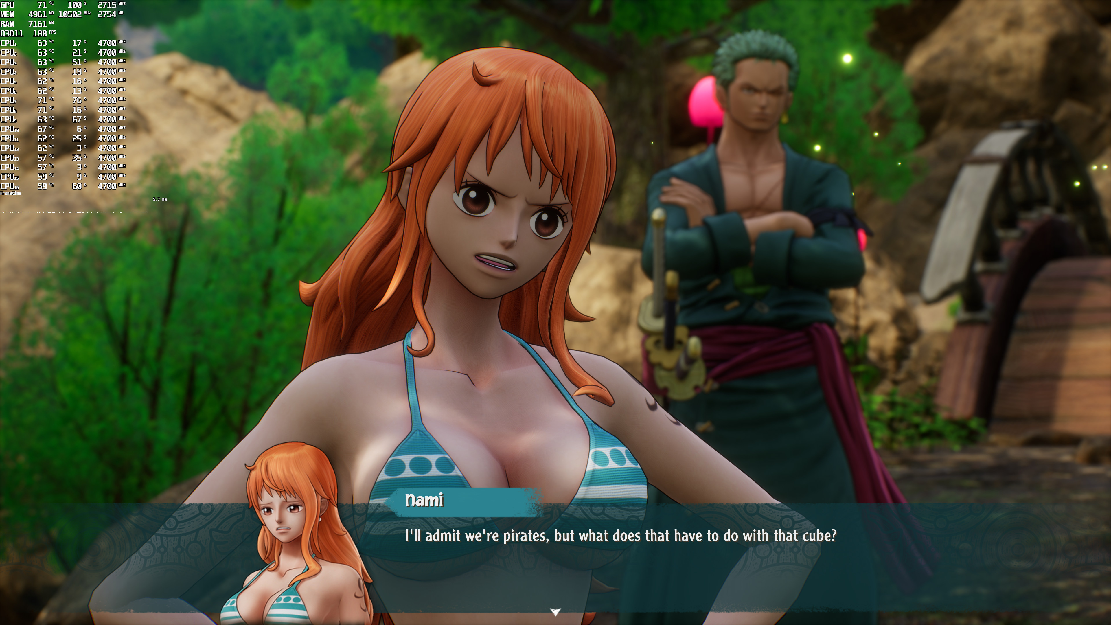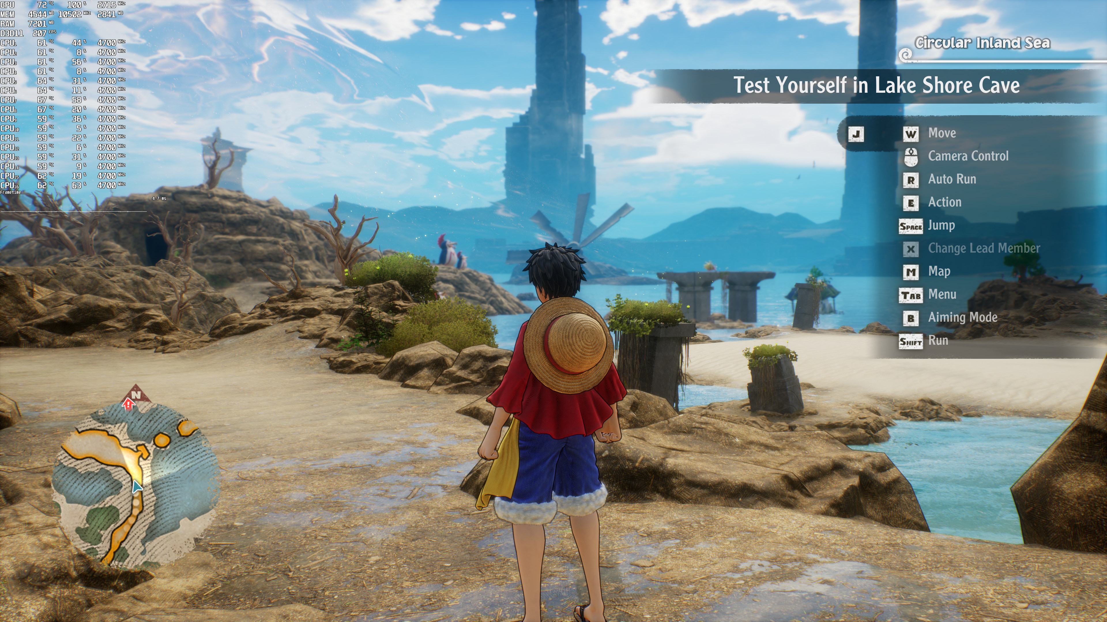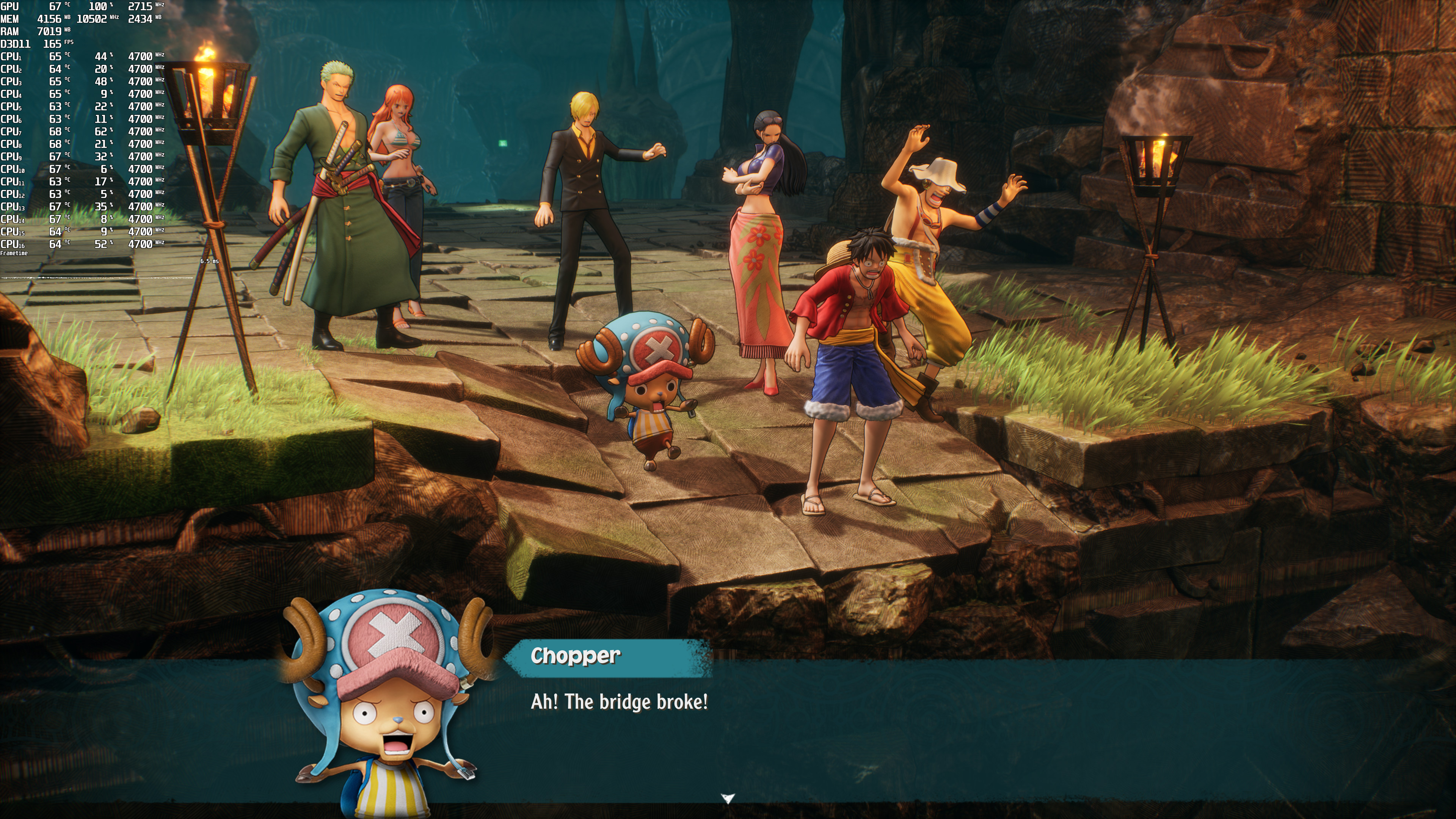 One Piece Odyssey does not feature any built-in benchmark tool. Thus, for our benchmarks, we used Adio’s House area. That area appeared to be one of the most demanding ones, making it ideal for our tests.