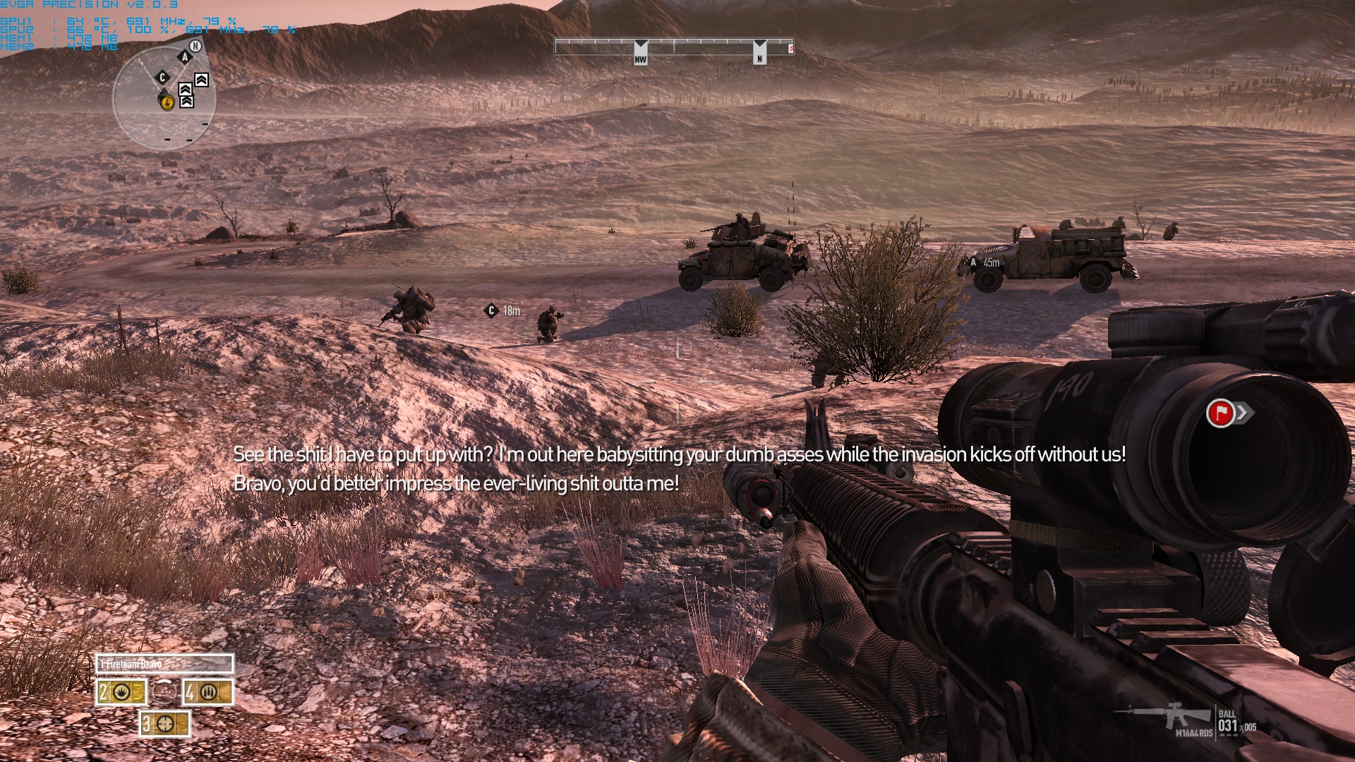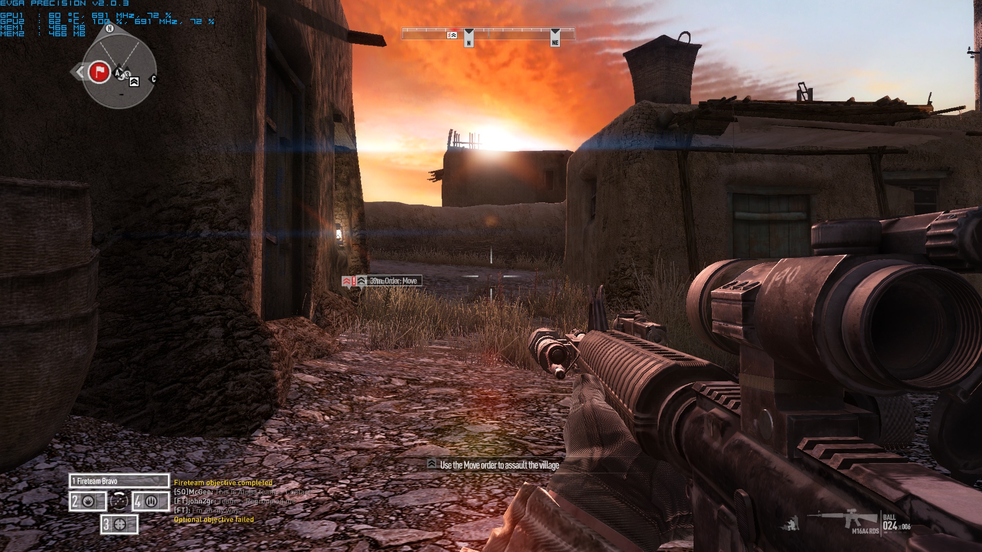 When we run our GTX295 in Single GPU Mode, there were noticeable slowdowns. Make no mistake, you’ll need a powerful GPU to run Red River with maxed out details and 60fps. On the other hand, with this custom SLI profile, Operation Flashpoint: Red River ran beautifully on our test system. There were occasional frame drops to 50’s, but the overall gaming experience was great. Those frame drops were mainly due to the engine’s inability in properly scaling on our quadcore. As with Dirt 3, even though this latest version of the EGO engine takes advantage of quadcores, it doesn’t take full advantage of them. As a result of that, our CPU usage was averaging around 70-80% in all four of our cores. Although this is a good CPU usage, we noticed that our GPU wasn’t used to its fullest, which hints to a CPU limitation. However, we should note that there was a 10fps performance hit when we tried to simulate a dualcore CPU that was running at 4.2Ghz. We should also note that the 2.0 version of the EGO engine is benefited by the new architecture of all latest CPUs. Use an I5/I7 C In the game will run smoother.
