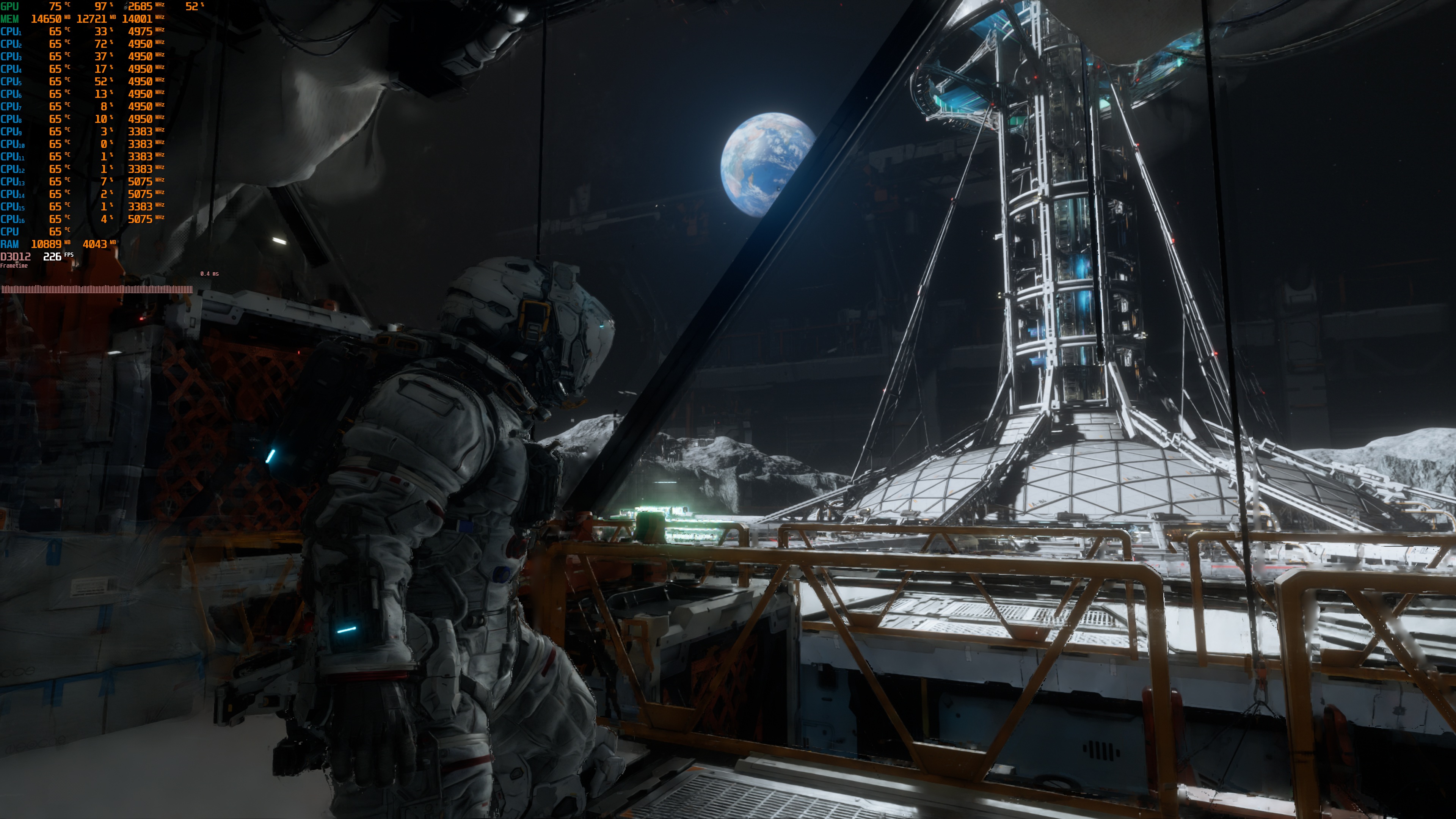 Pragmata does not have a built-in benchmark tool. So, for our tests, I used this area. From what I could see, this was one of the most demanding areas you could find early in the game.