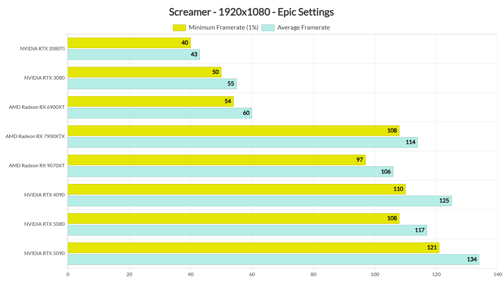 Our top five GPUs had no trouble at all running the game at 1440p/Epic Settings. It’s worth noting that the AMD Radeon RX 7900XTX is able to match the performance of the NVIDIA RTX 5080 at both 1080p and 1440p. The AMD Radeon RX 9070XT is also really close to the NVIDIA RTX 5080. So, from what we can see, this game loves AMD’s hardware.