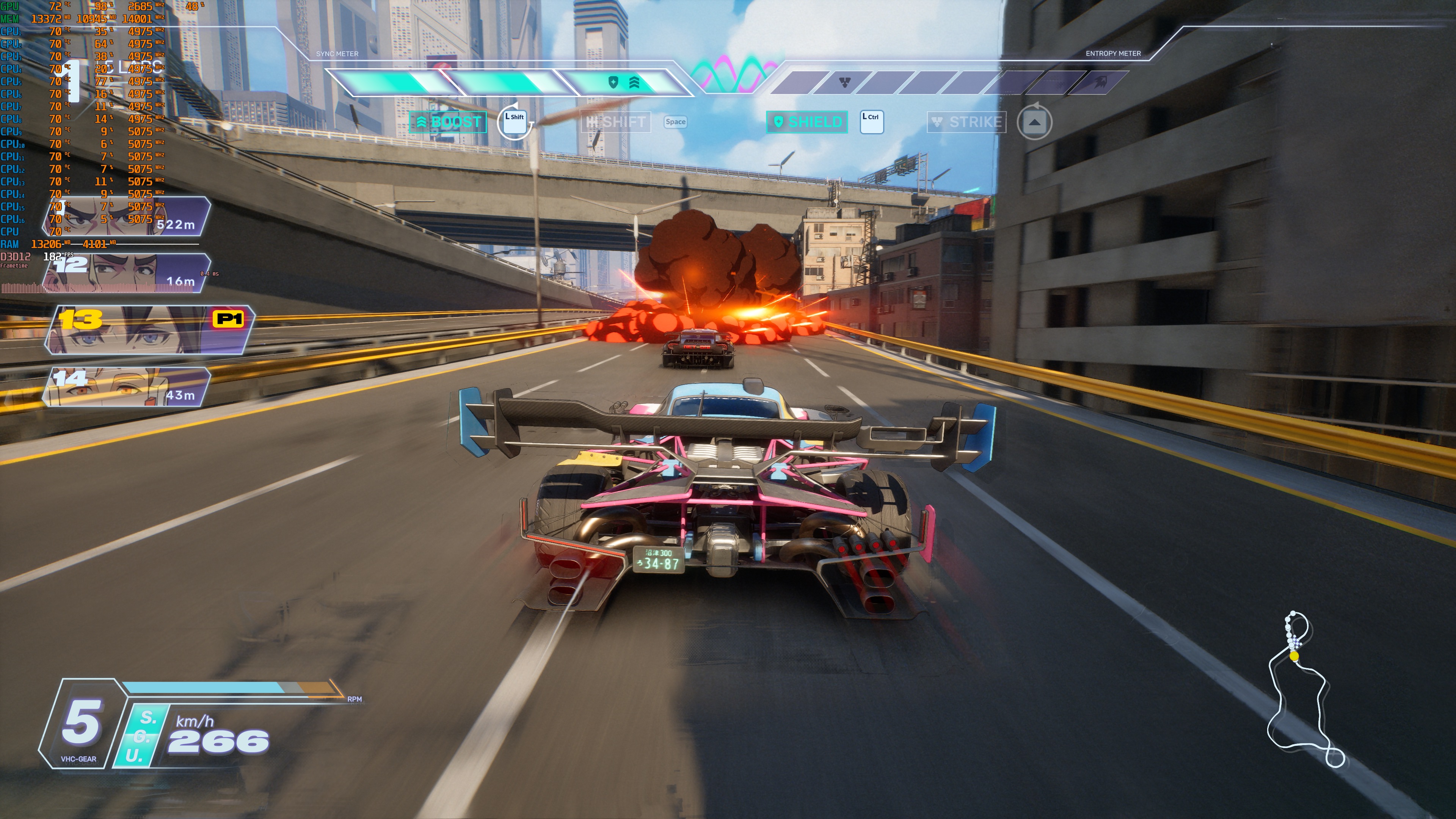 Screamer uses both Nanite and Lumen. So, these 4K performance numbers do not really surprise me. The good news is that you can use either DLSS or FSR to boost your gaming performance. From what I could see, the DLSS 4 MFG implementation is great. The screenshots that accompany this article are at 4K/Epic Settings with DLAA and MFG X4. And, as you can see, there are very minimal visual artifacts. During normal gameplay, you won’t notice them. In freeze frames, you will be able to spot them.