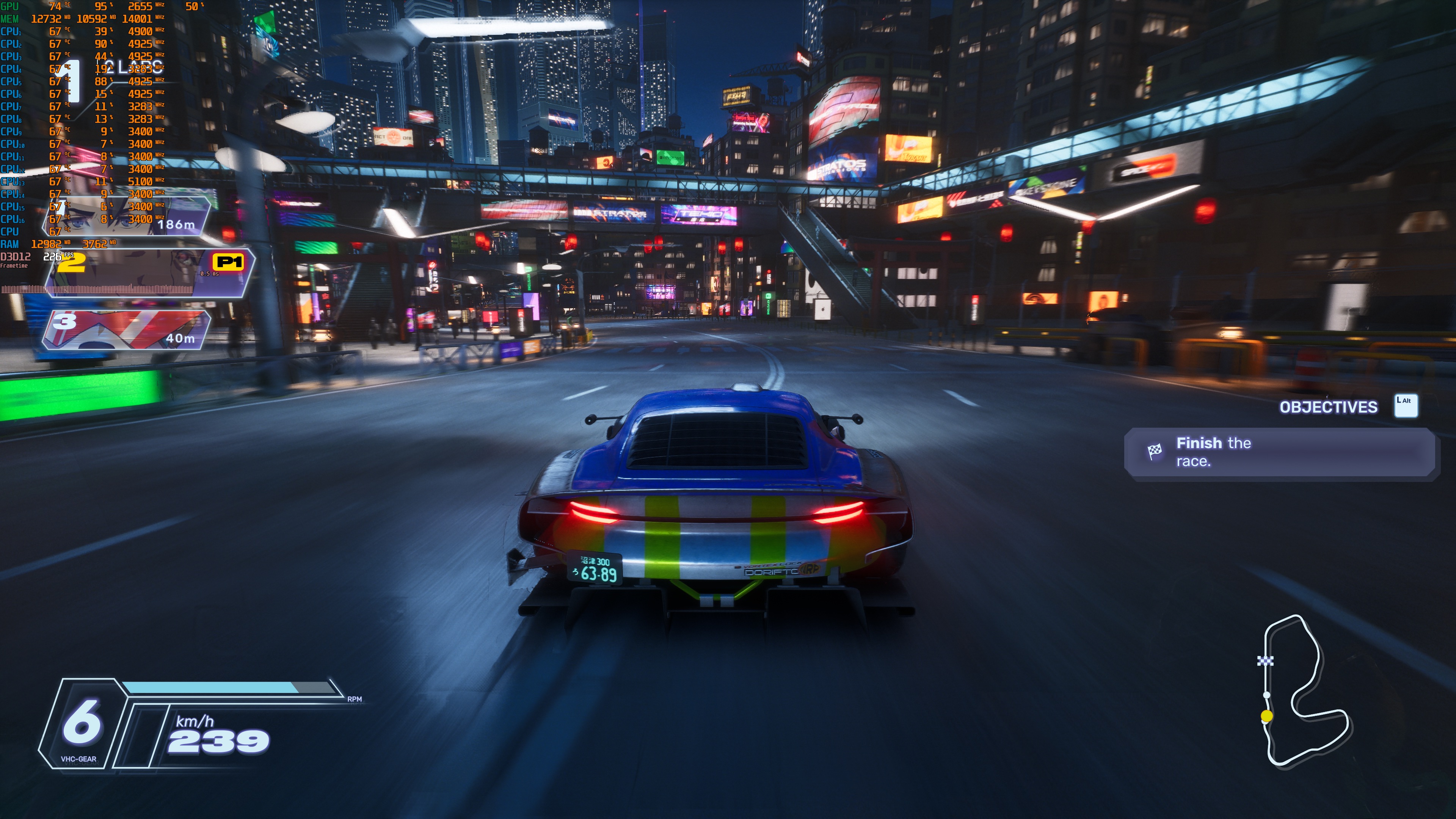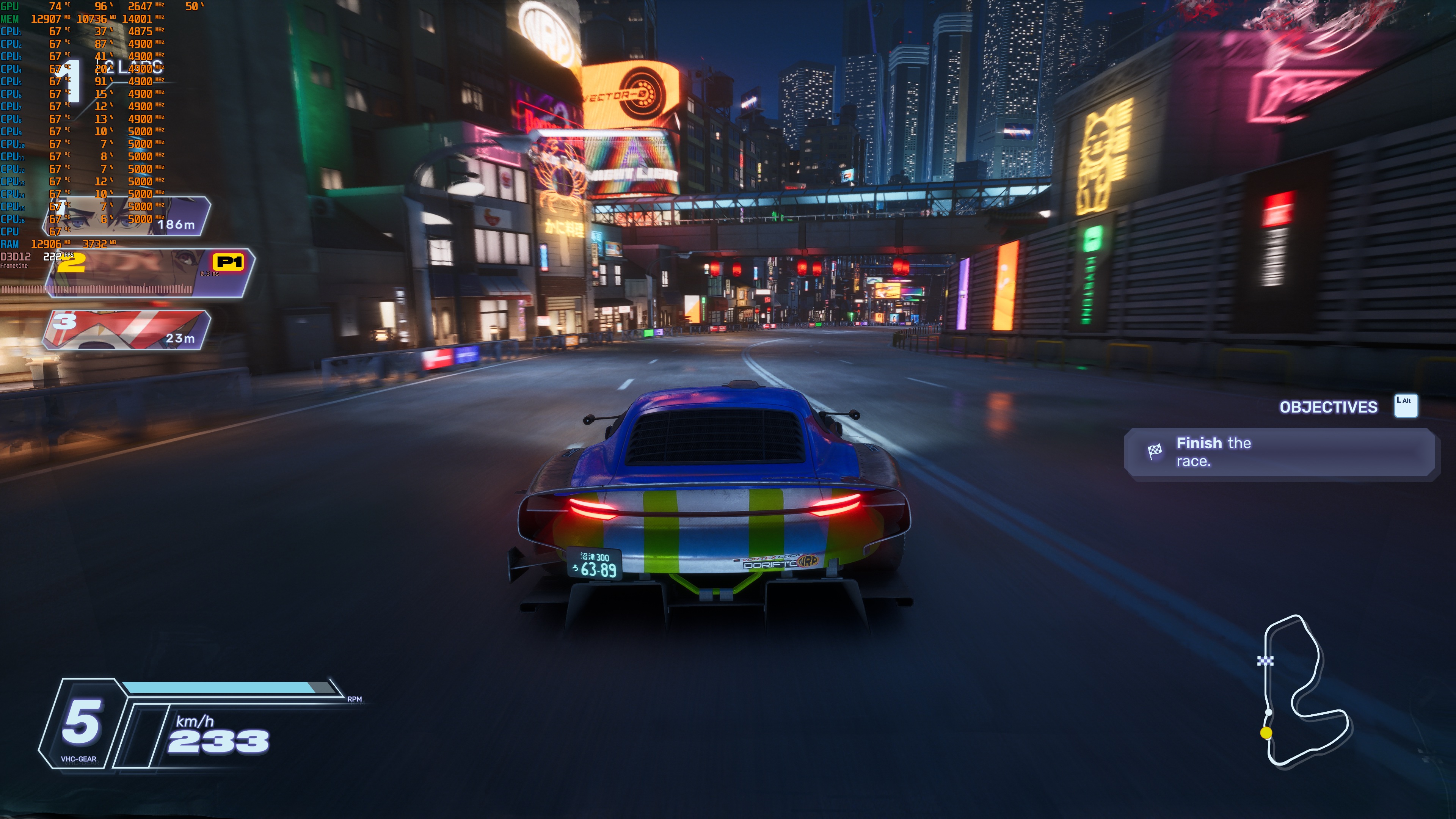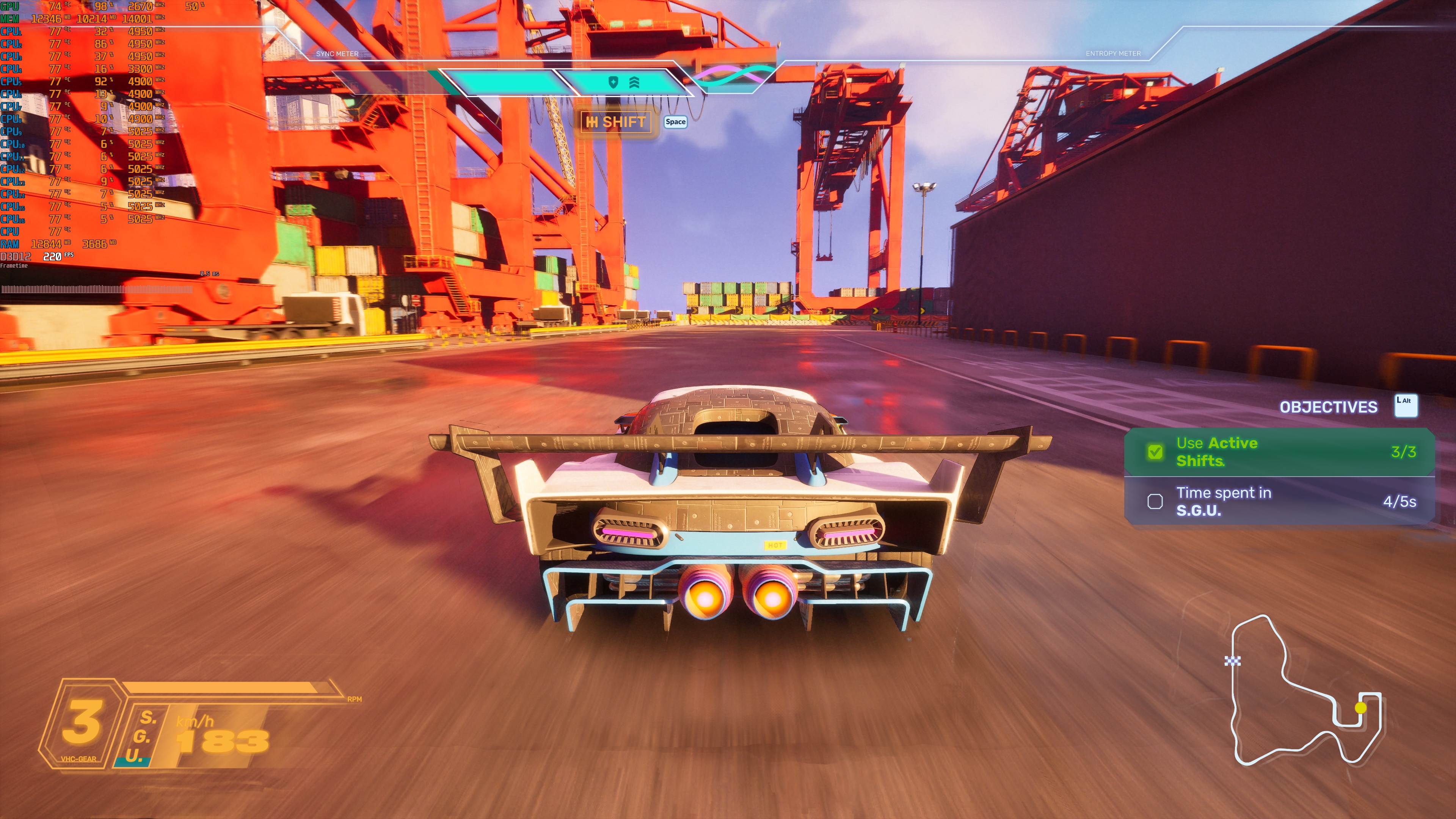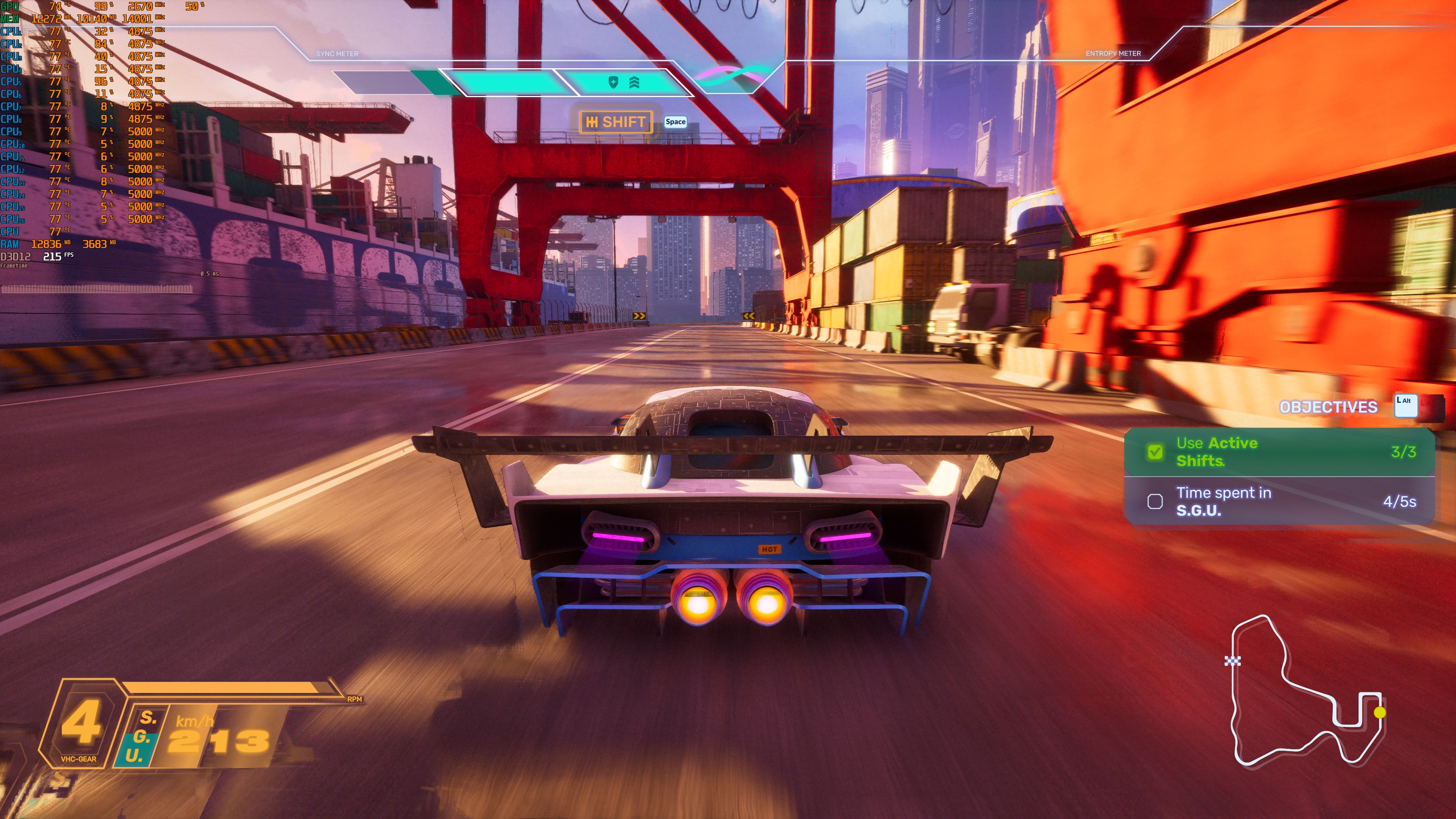 Screamer does not feature a built-in benchmark tool. So, for our tests, I used the Stadium Olympus arcade stage. From what I could see, this was a demanding one (when racing with all cars). As such, it should give us a pretty good idea of how the rest of it runs.