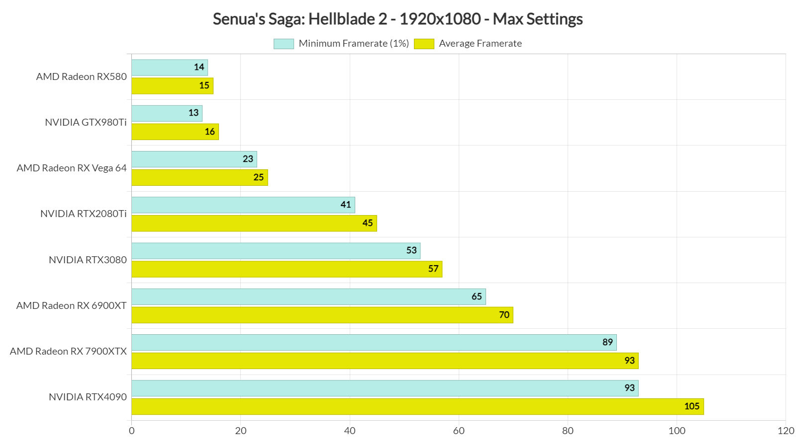 At Native 1080/Max Settings, the only GPUs that were able to push over 60fps were the AMD Radeon RX 6900XT, AMD Radeon RX 7900XTX and the NVIDIA GeForce RTX 4090. Yep, the NVIDIA RTX 3080 is unable to come close to 60fps in this title at that native res.