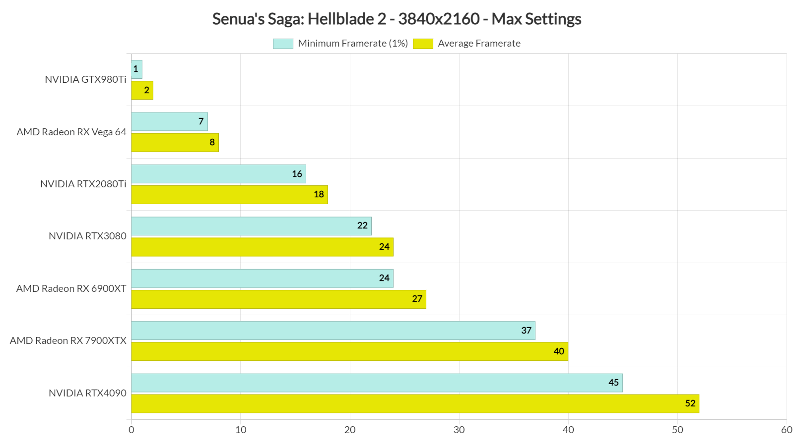 At Native 1440p/Max Settings, the AMD Radeon RX 7900XTX and the NVIDIA GeForce RTX 4090 were the only GPUs that could provide a smooth gaming experience. As for Native 4K/Max Settings, there isn’t any GPU that can come close to 60fps.