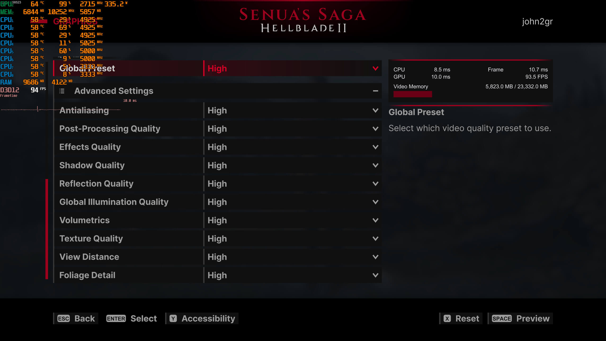 Ninja Theory has added a respectable amount of graphics settings to tweak. PC gamers can adjust the quality of Effects, Shadows, Textures, Foliage, View Distance and more. The game supports NVIDIA DLSS 3, AMD FSR 3.0 and Intel XeSS. However, there is only support for DLSS 3 Frame Generation. That’s a bummer for everyone who doesn’t own an RTX40 series GPU. Not only that but Hellblade 2 doesn’t have an FOV slider, and there is no in-game setting to disable Chromatic Aberration or Film Grain. Thankfully, though, you can use these tweaks to remove them.