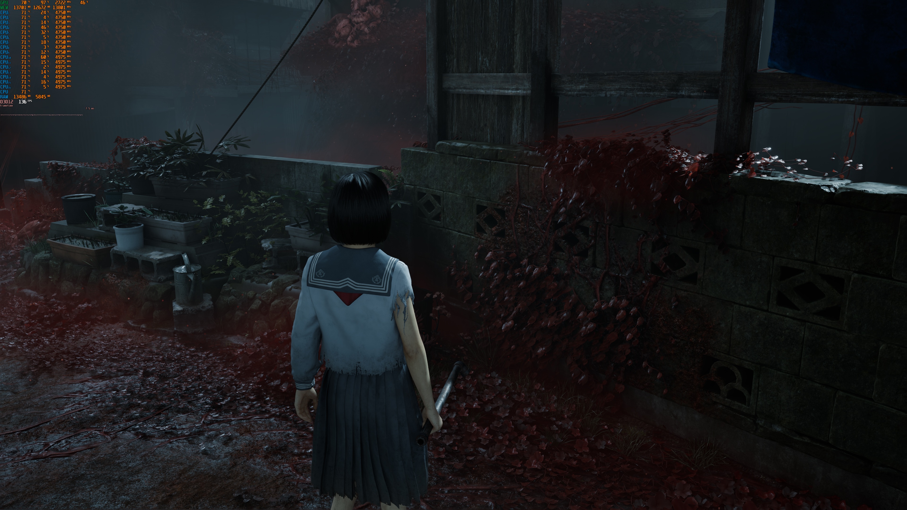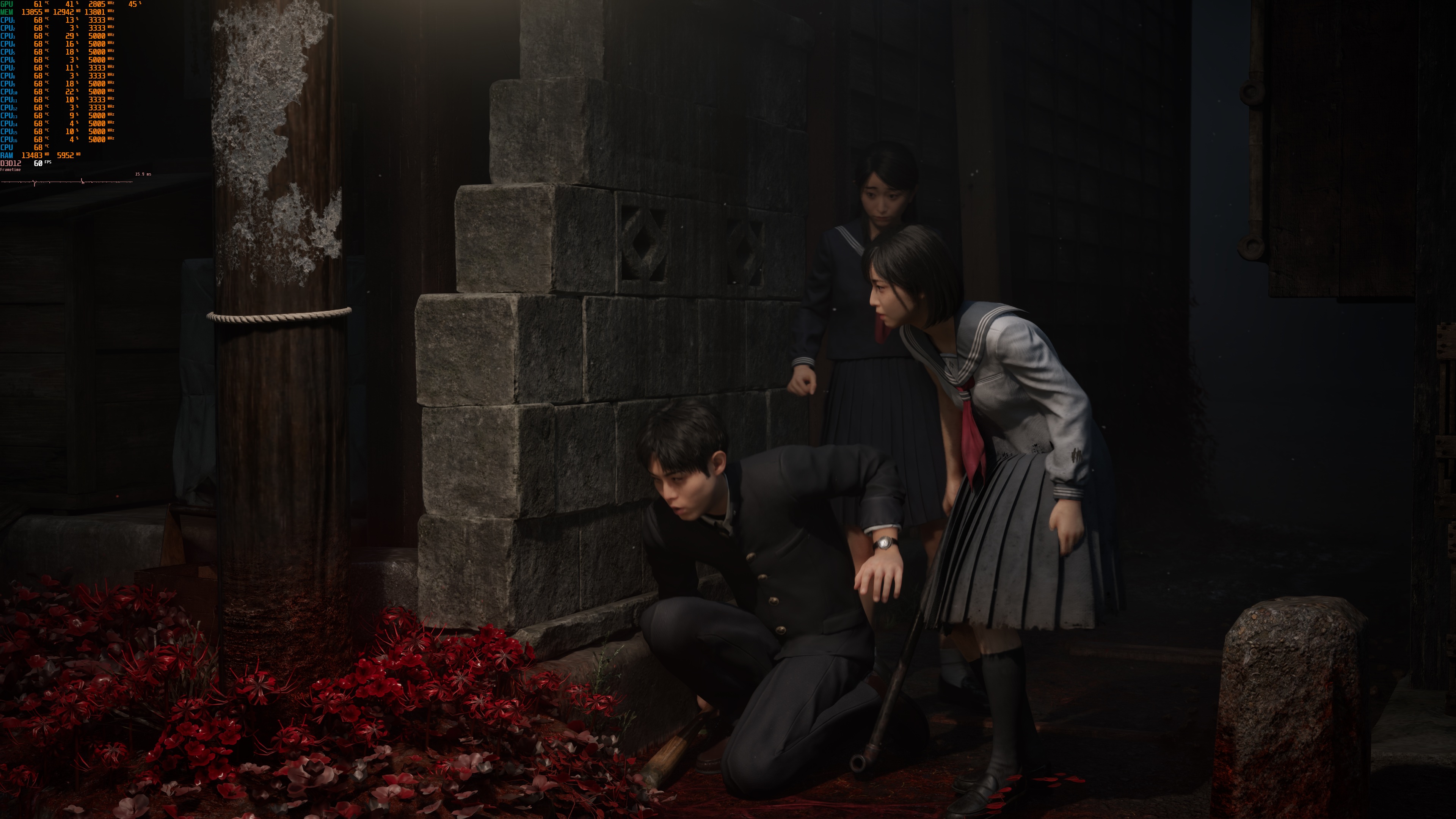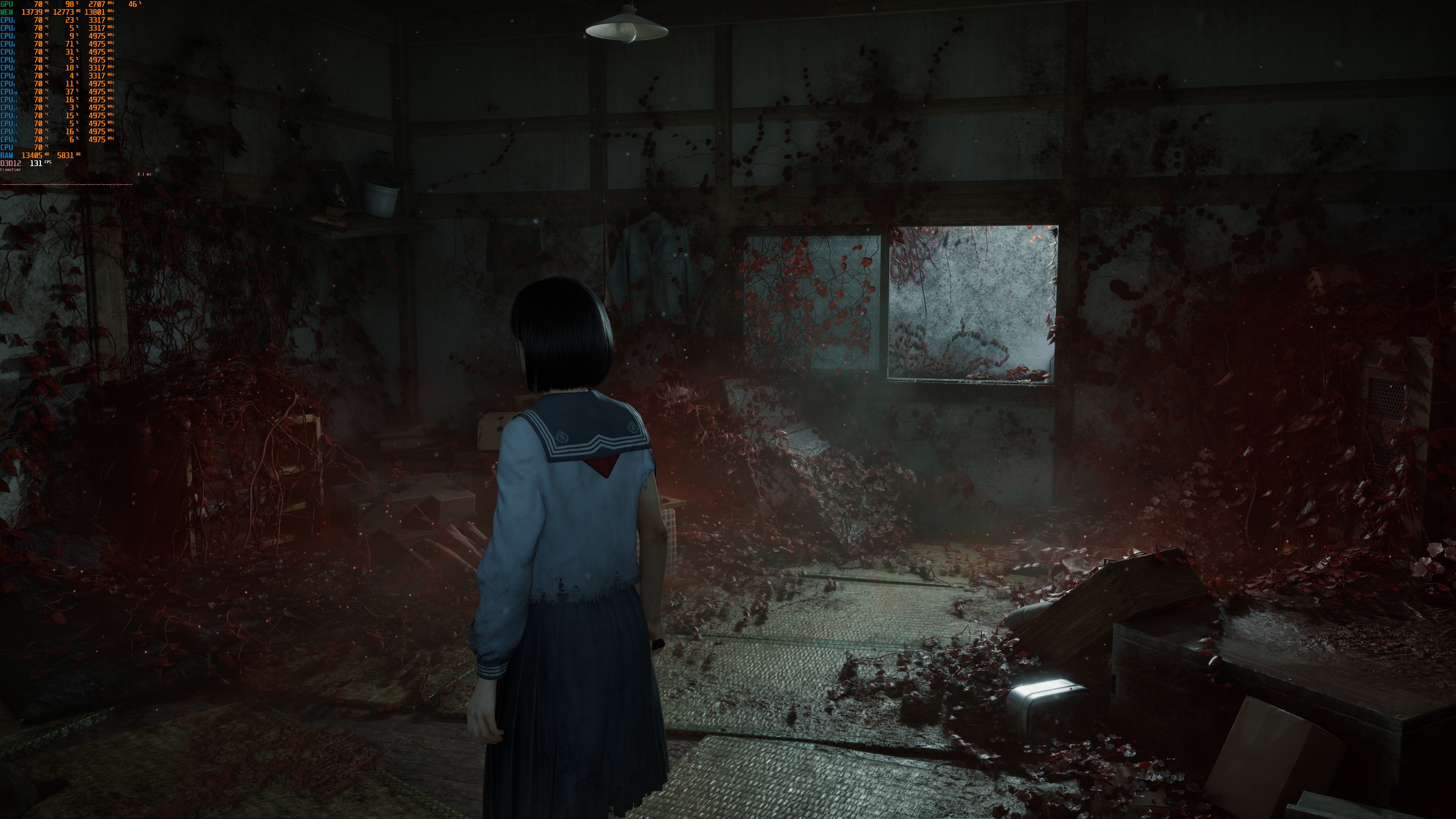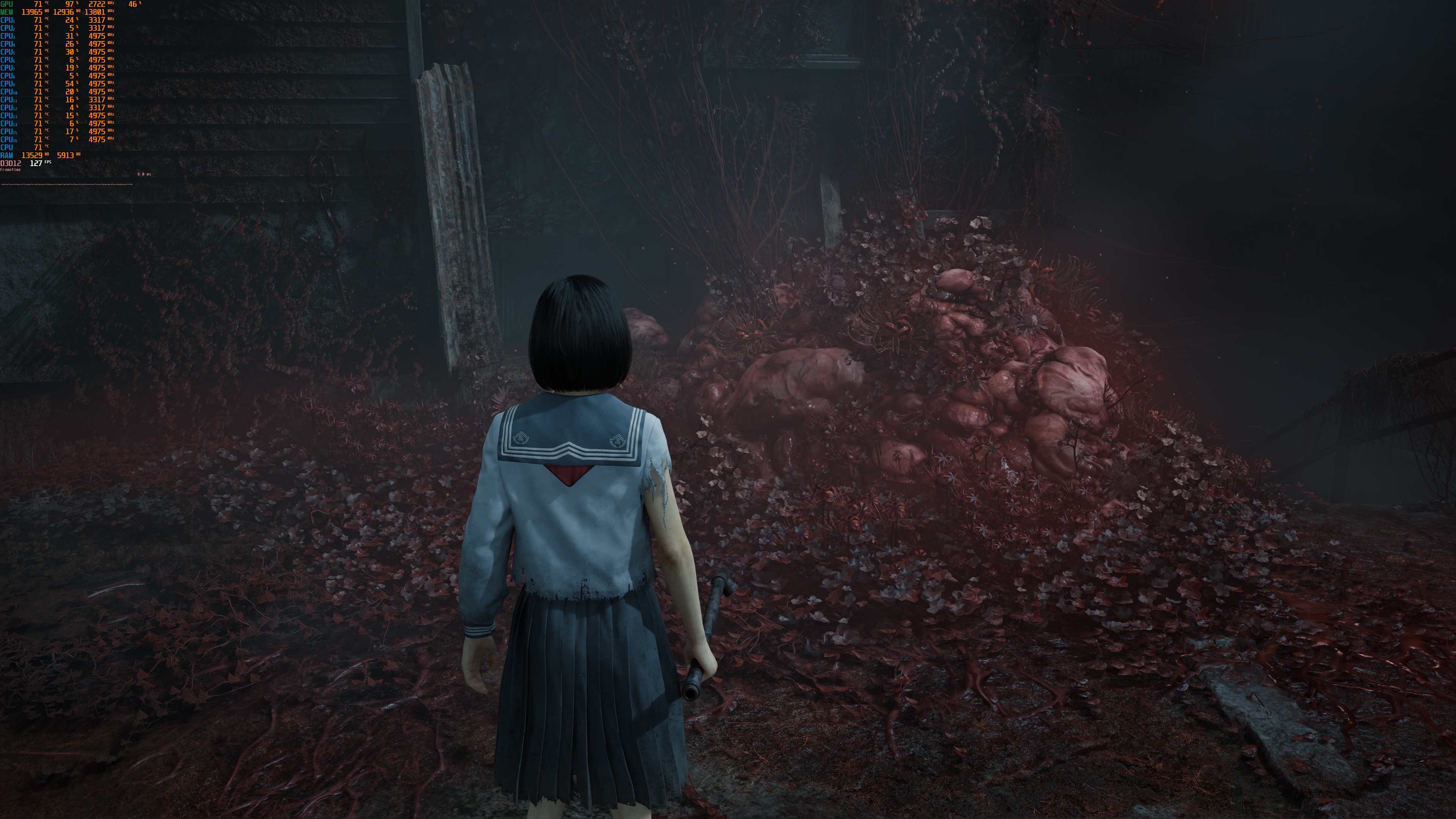 Silent Hill f does not have a built-in benchmark tool. So, for our tests, I used this scene. This appeared to be one of the most demanding areas I could find early in the game. As such, it should give us a pretty good idea of how the rest of it runs.