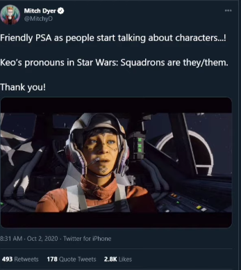 2. he wrote battlefront 2 as well. Both games have strong black women as the empire and the resistance is mostly aliens, one of them looks like a woman with bad tattooes whose pronouns are they/them.