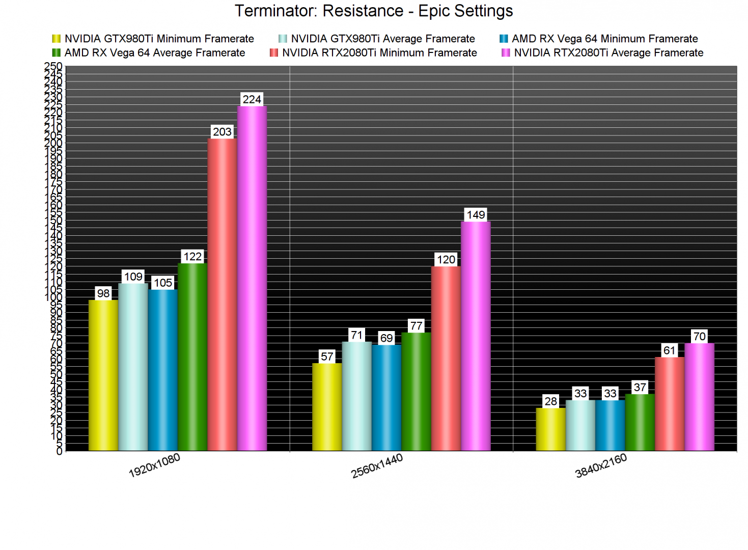 At 1440p/Epic, our Vega 64 and RTX2080Ti had no trouble at all running the game. Our GTX980Ti was also able to offer a smooth gaming experience, though there were some minor drops to 57fps. As for 4K/Epic, the only GPU that was able to offer a smooth gaming experience was the RTX2080Ti.