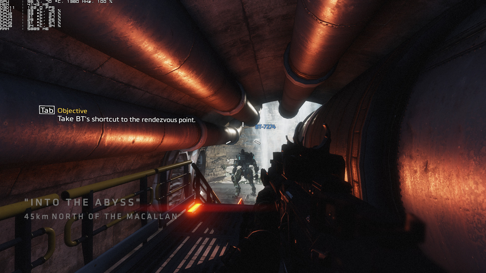 Titanfall 2 is powered by a modified version of the Source Engine. And as we can see below, Titanfall 2 is clearly a GPU-bound title. Our hexa-core CPU was not stressed at all, and did not bottleneck our GPU under any scenario.