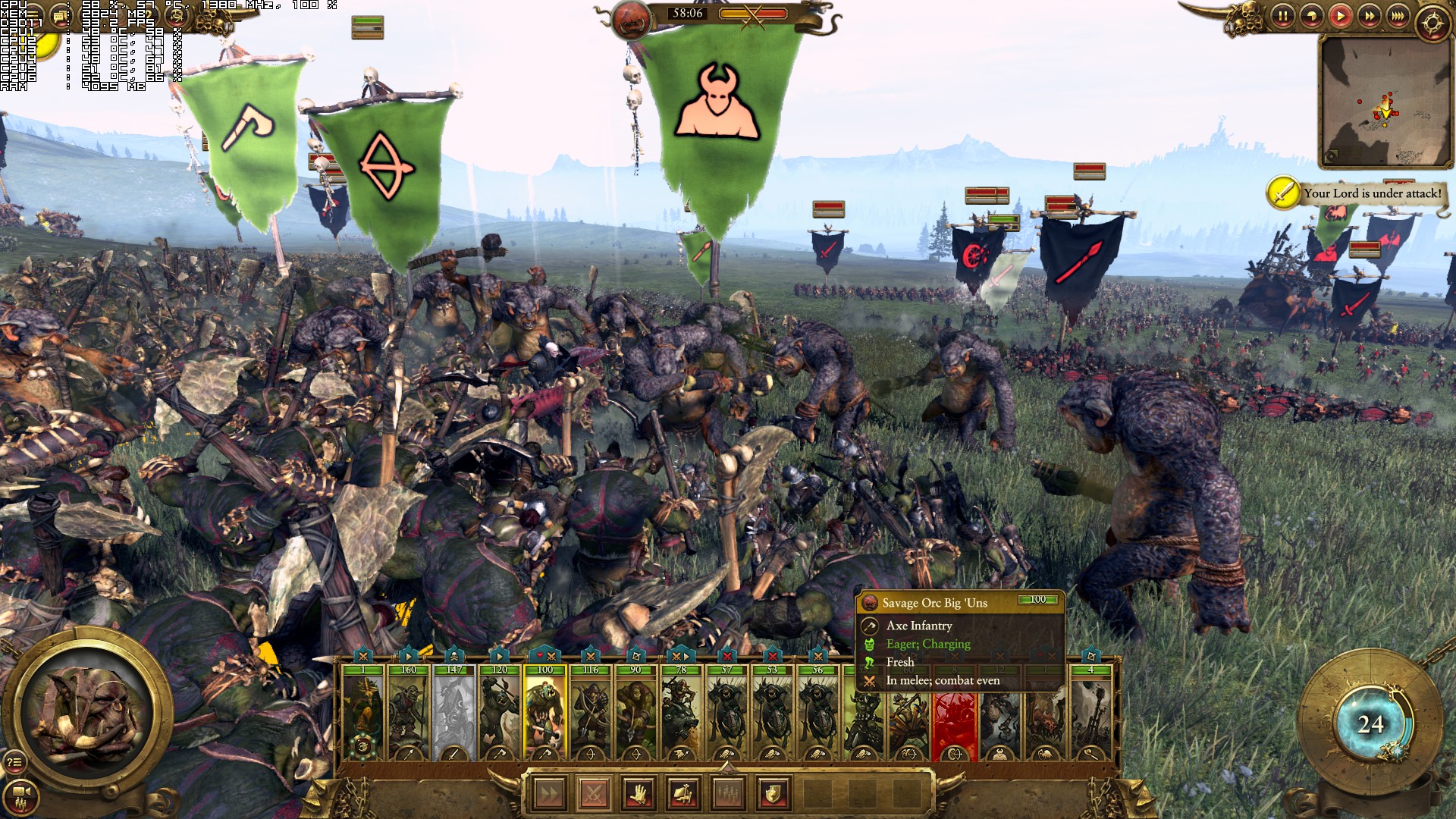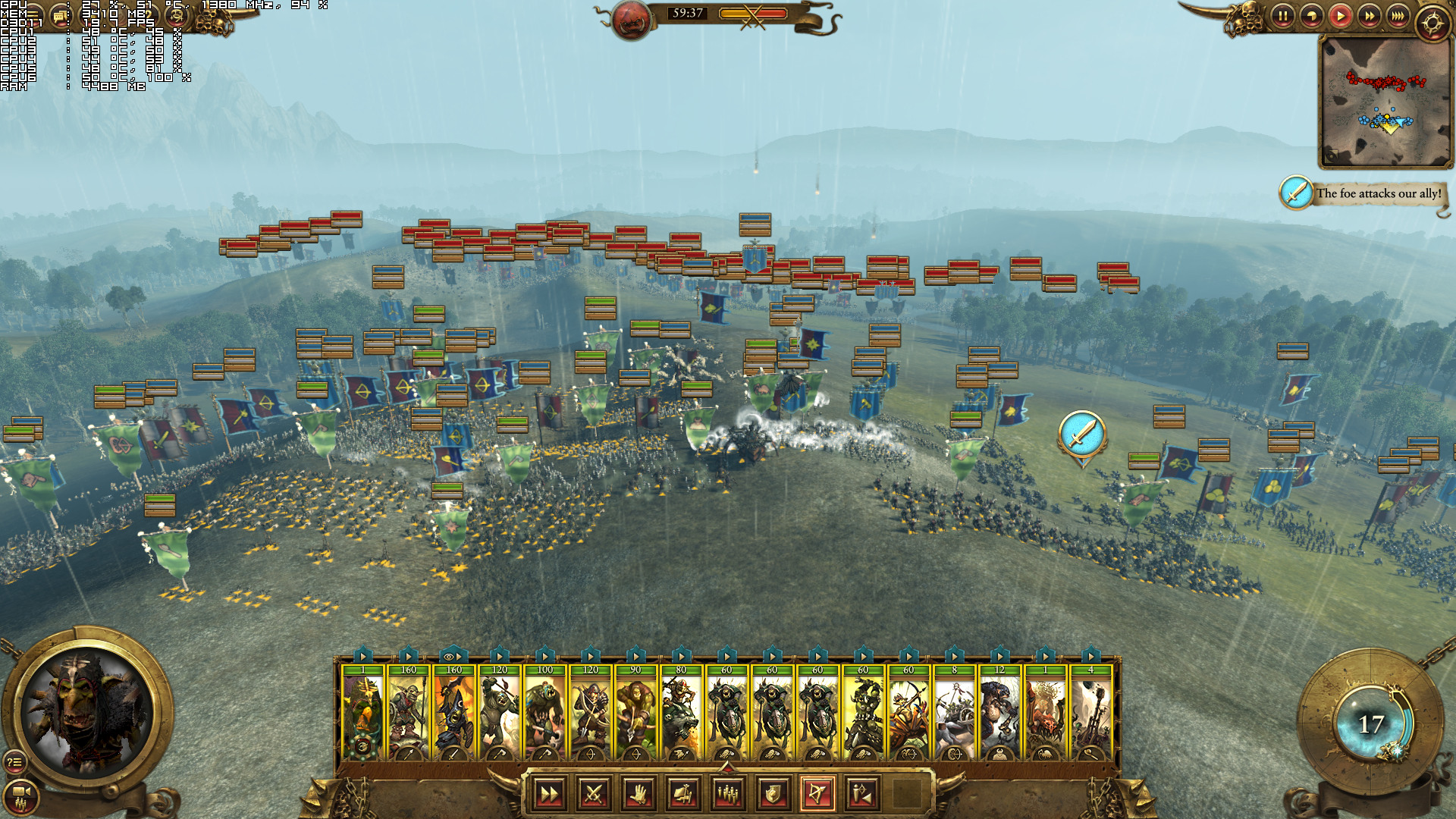 On the other hand, when we enabled 4X4 battles, the game was unplayable as only one CPU core was maxed out. Total War: WARHAMMER ran with 15fps on Ultra settings in 1080p, with our GPU barely being used.