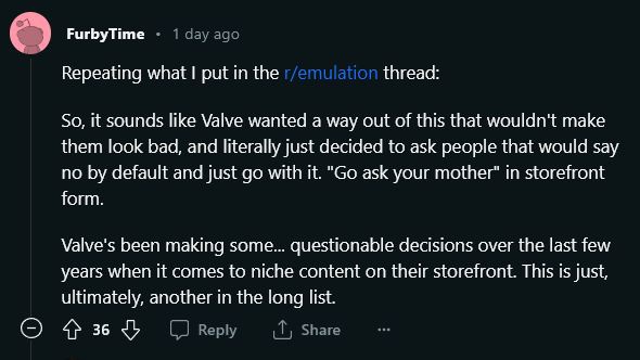 Valve is the one taking down emulators themselves. Valve contacted Nintendo and asked if they should take it down and took down the Nintendo emulator off Steam themselves.