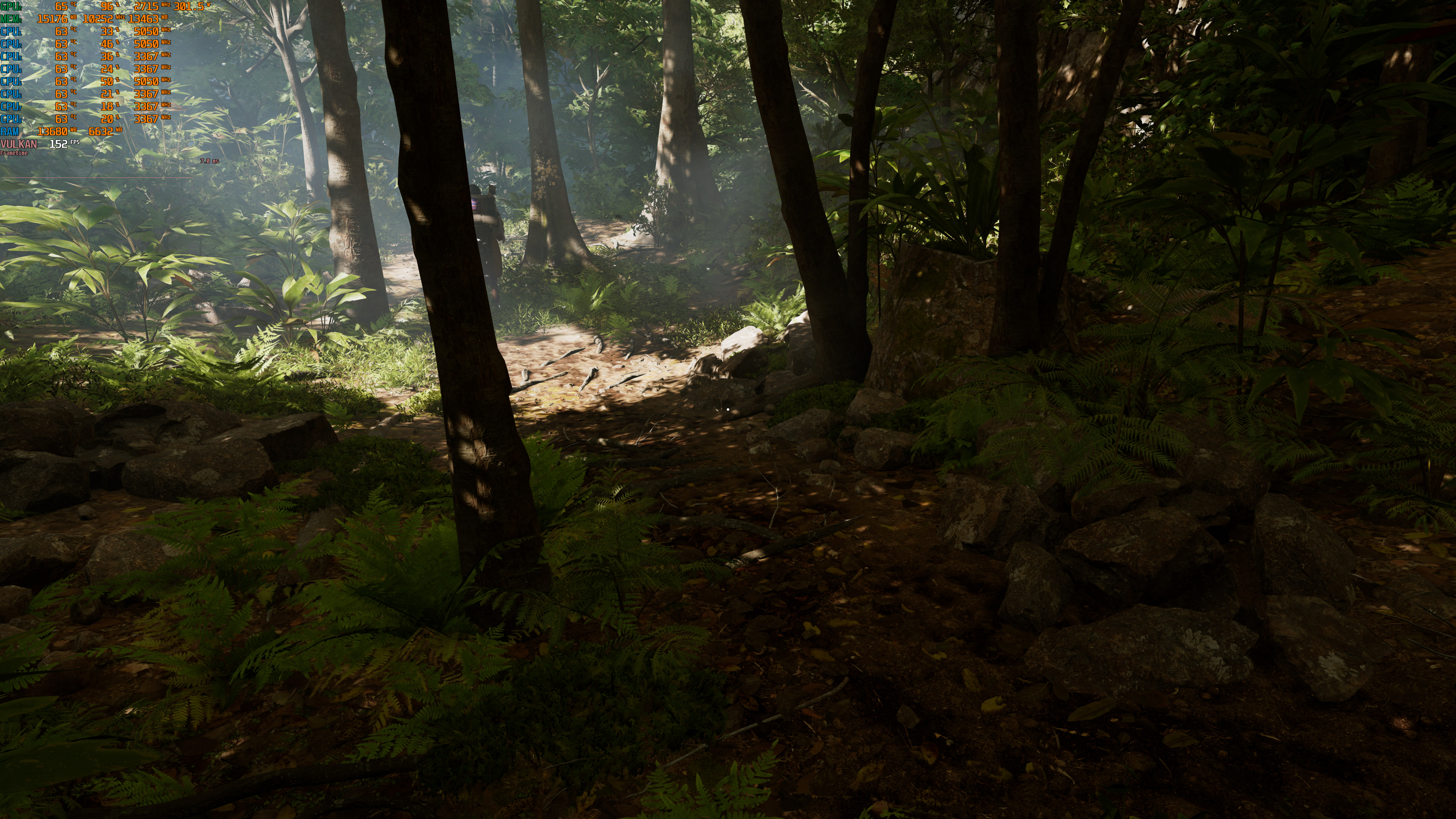 The good news here is that RT Sun Shadows fix all the shadow issues I had with non-PT version. With Path Tracing, shadows will no longer appear right in front of you. The same applies to RT Indirect Illumination. With it enabled, you won’t see any lighting changes happening in two or three meters. Not only that, but we now have better AO thanks to Path Tracing. Take a good look at the jungle shots. Without Path Tracing, the environment feels fake. With Path Tracing, it looks exactly the way it was supposed to.