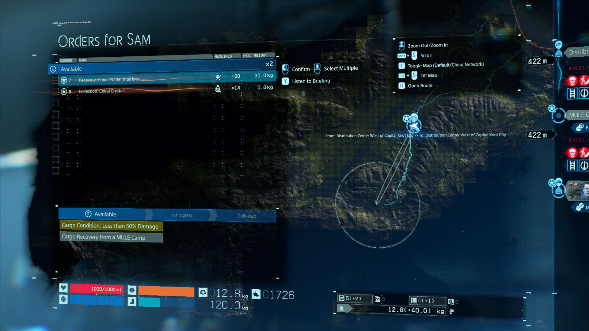 Throughout your journey you’ll also come across lost cargo and equipment (some of which have been dropped by other players) as well as materials. These can be returned to any base to receive likes (Death Stranding’s version of XP), and in the case of materials, it will stock up that resource at whatever base you decide to hand them in at.