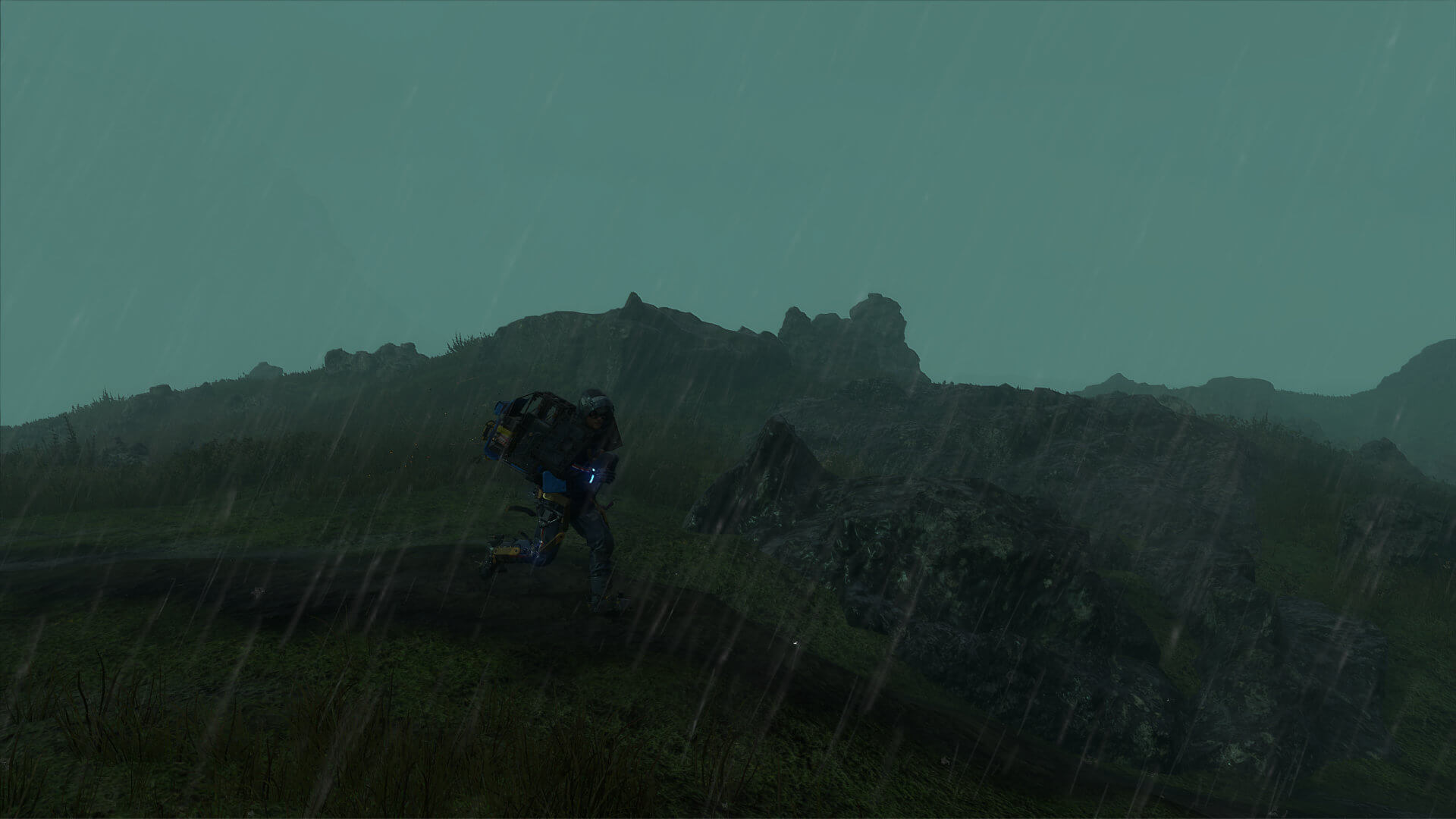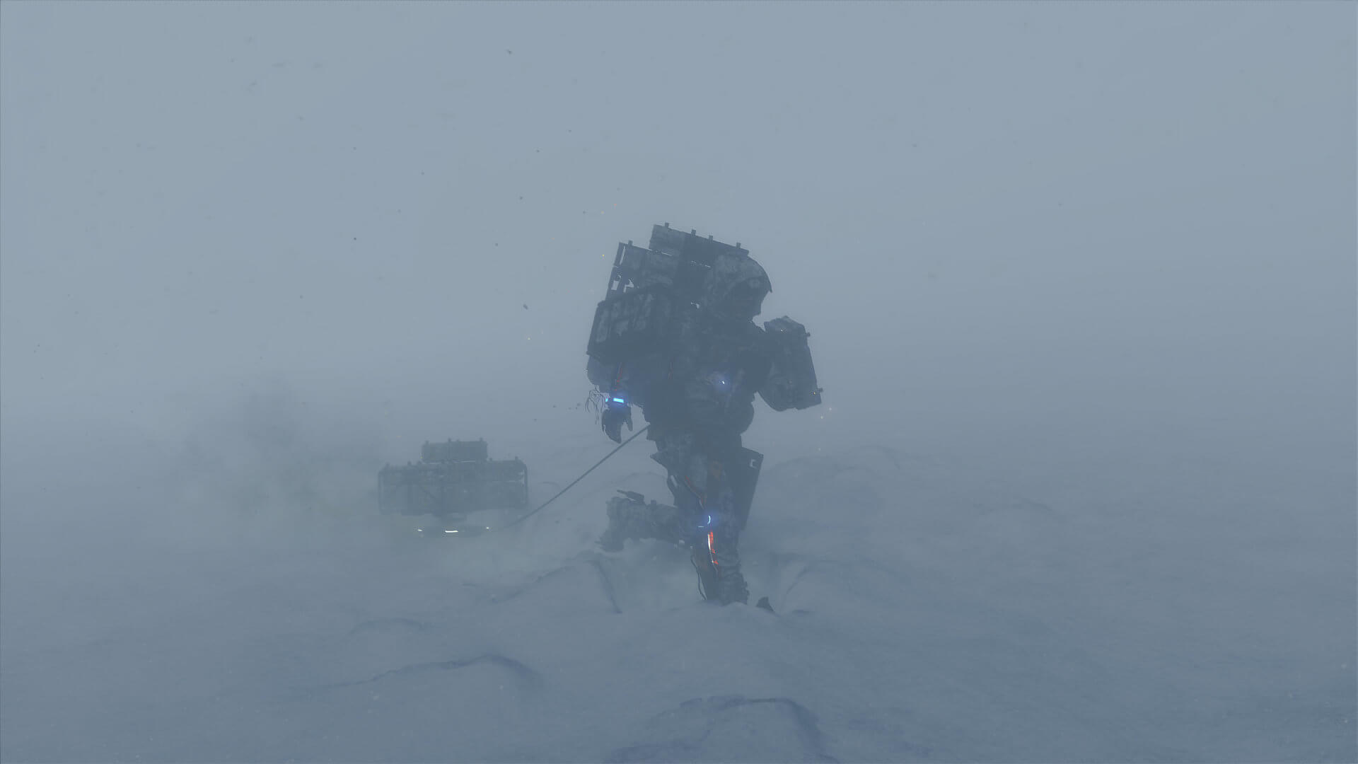 In the places where the two worlds mix, Chiral matter exists and causes something called Timefall. It’s essentially rain or snow that causes the rapid aging of anything it comes into contact with, and is populated with BTs (Beached Things; entities whose souls are trapped in the world of the living following the events of the Death Stranding).