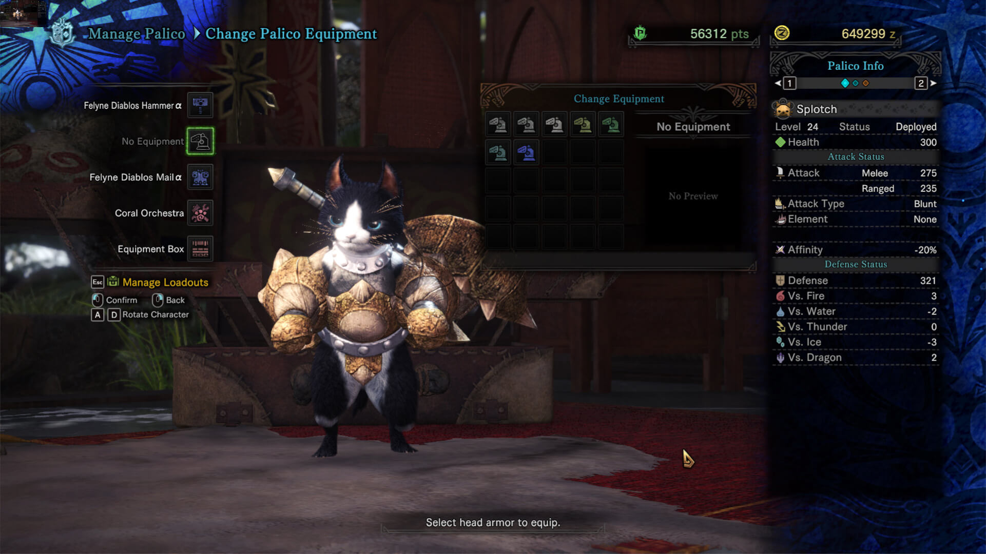 The Palico itself can also be outfitted with armor and weapons much like your own character, but it’s armor only adds defense and resistance, not skills like they do with the characters armor.