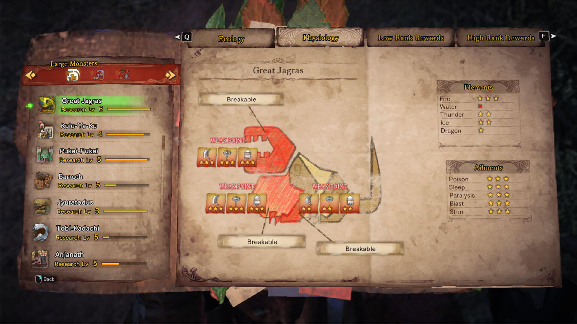 In addition to collecting resources, you’ll also be investigating various monster trails which not only allow you to track a monsters movement in that zone, but also level up your knowledge of that respective monster, which will provide you with more detailed information about it (strengths, weakness, resistances and what it drops for example) as well as unlocking investigations missions.