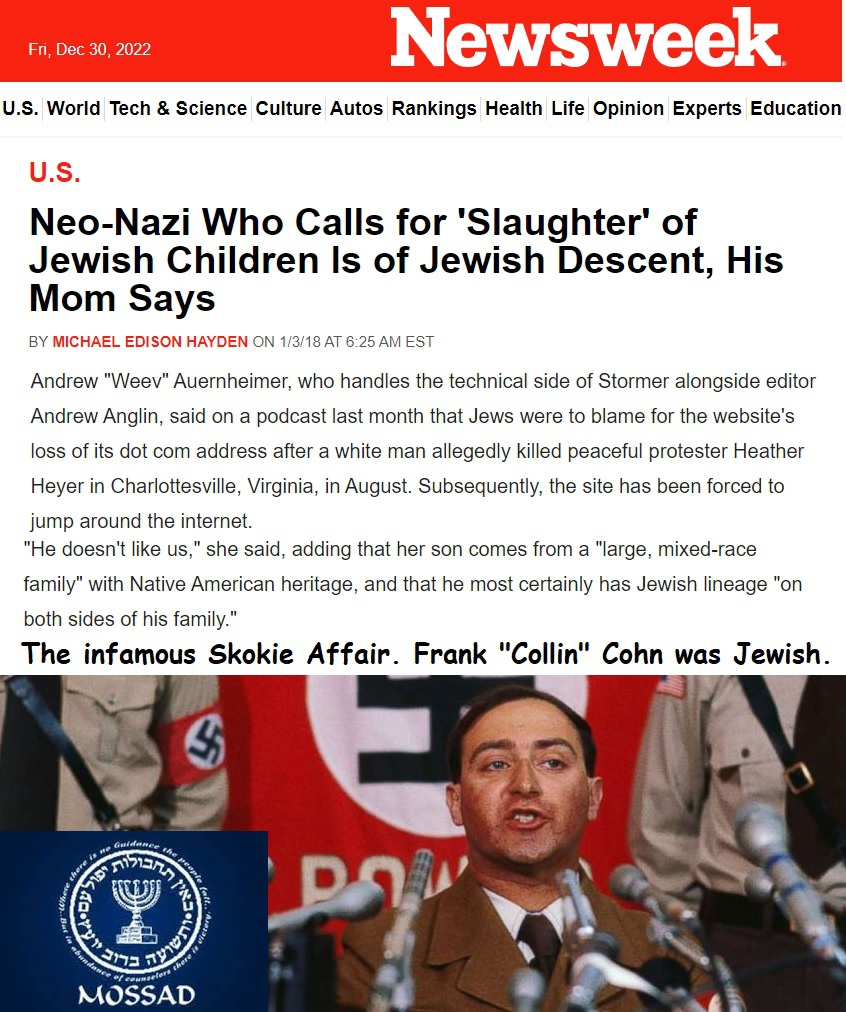 Now you want people to die for Israel to kill Muslims and you have stooped so low as to run psyops like The Lavon Affair where you plotted to kill US and UK civilian targets to blame Muslims. Israel gave out MEDALS for that act of terrorism. Can’t forget that Epstein and his madam were Mossad either. Crazy how all these terrorists wear masks just like the KKK did. See the Skokie Affair and their leader Frank Collin whose real name was Cohn. Can’t forget the “white supremacist” websites either. BTW what is Boaz and Jachin, why are they in every B’nai Brith and shabbos goy lodge and why was Building 7 which stands for completeness owned by the Salomon brothers. Also who was child predator and murderer Leo Frank who tried to frame a black man for his crime? Hint. See the ADL.