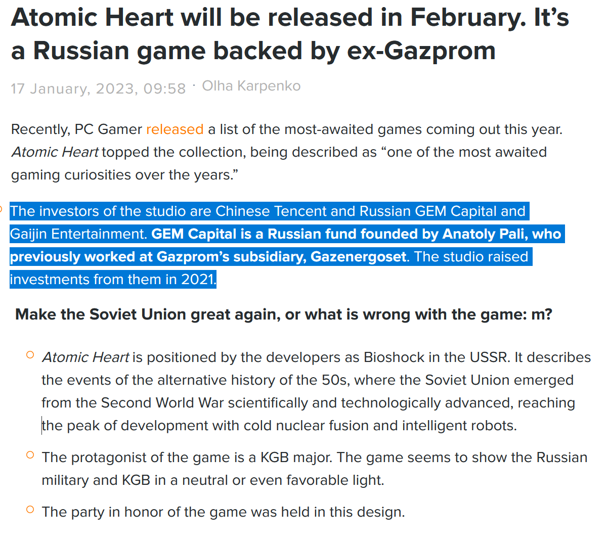 3. Kingdom come deliverance got a local millionaire to invest, dev was in russia not ukraine or poland who the fck you want to invest on it?