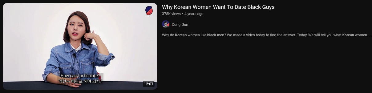 First off her face is FAKE( SK luv plastic surgery, so already character showing) Second, I aint watching that, BUT its not "Date" its get F*cked by…Thats why any comedy/romance/etc for the last 40 years has a bbc joke…so the impulsive scum around the world has that imprint, to act upon. USAs #1 export is culture. Plus women are status seeking and many cultures fetishize "others"/theWest. I experienced this while working in China. Frontfacing they hated whytes, But want to be like us, buy like us and be around us for status. People are Odd.