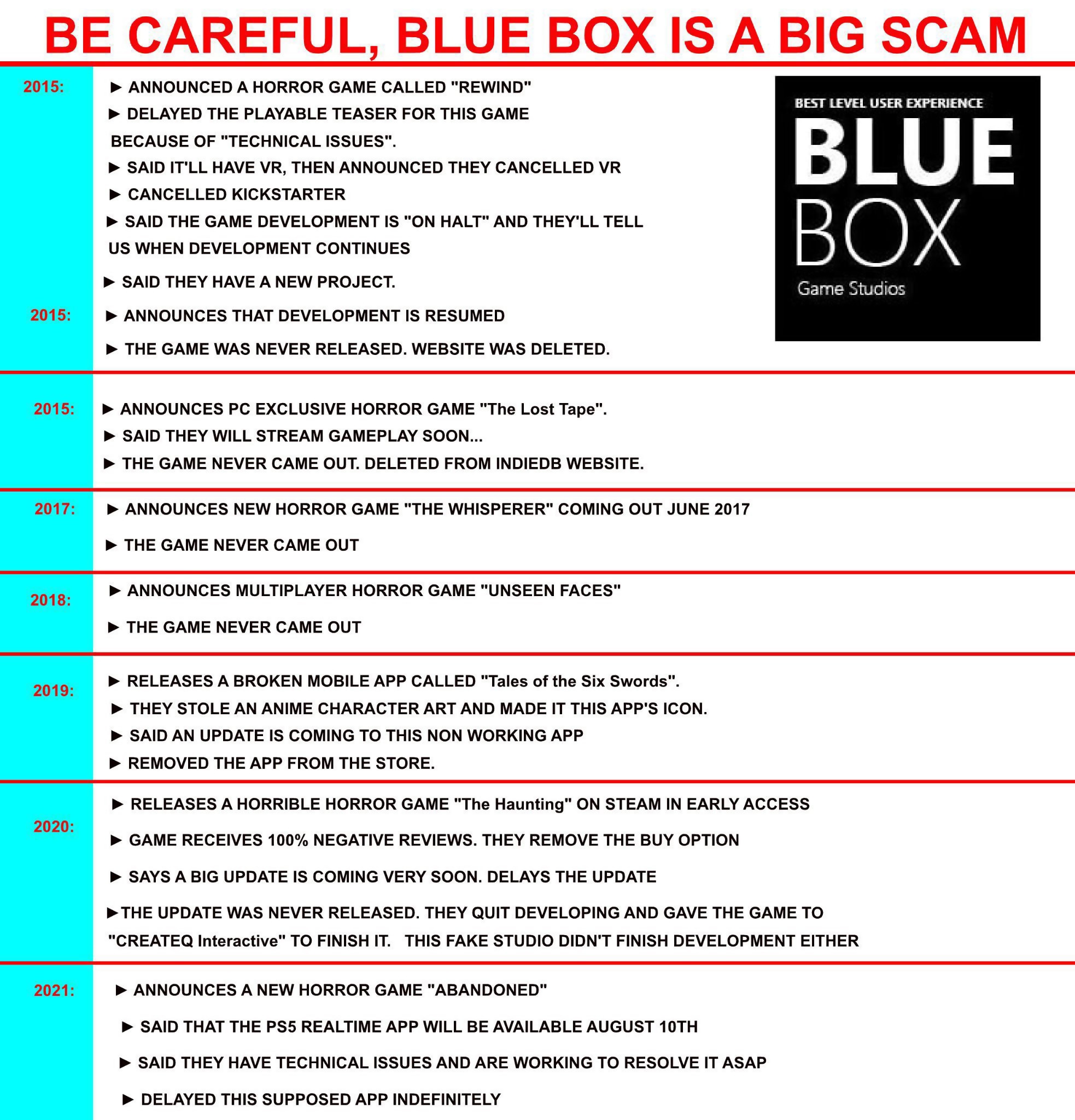 Fun fact: With this constant baiting and switching, Blue Box has managed to increase its Twitter followers to 56K. In other words, this unknown indie studio has more followers than Housemargue, the team behind Returnal and Resogun.