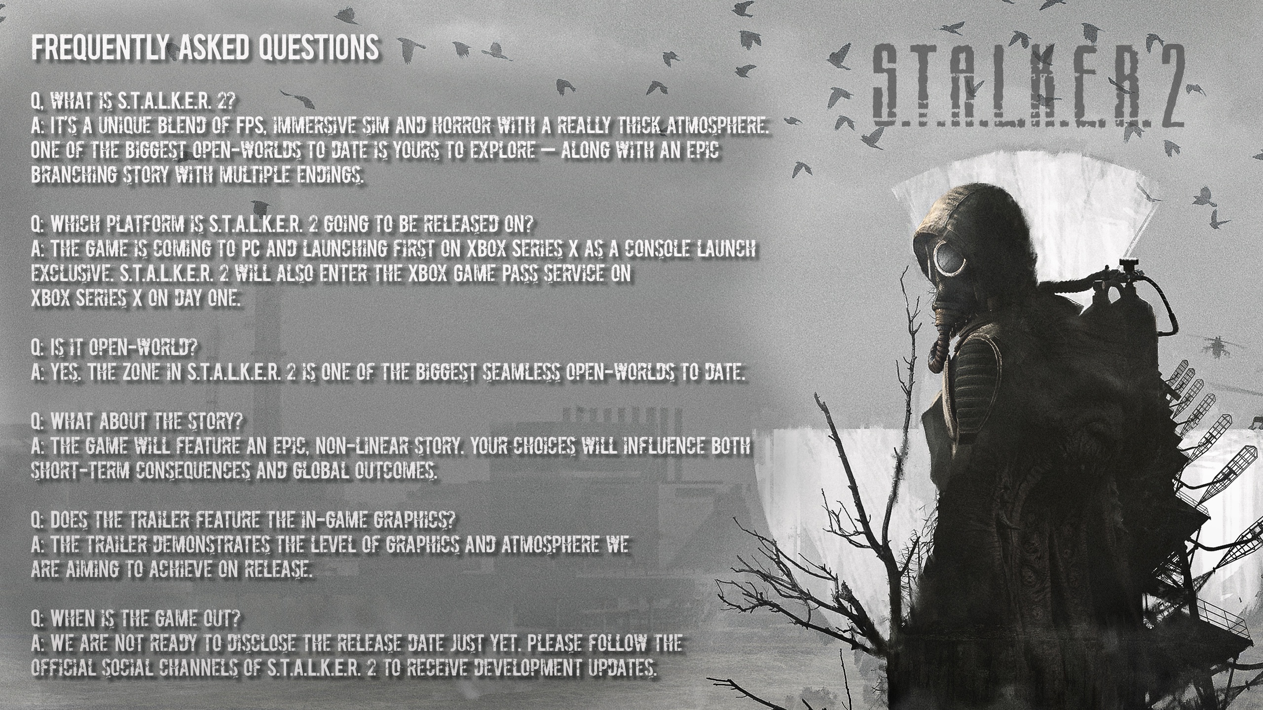 2. Hype is dead. I have a feeling that it’s going to be console focused. Original STALKER games really pushed new technologies. Shadow of Chernobyl did it with DX10, Call of Pripyat did it with DX11. but this is looks like appeal to mass casual populations on consoles.