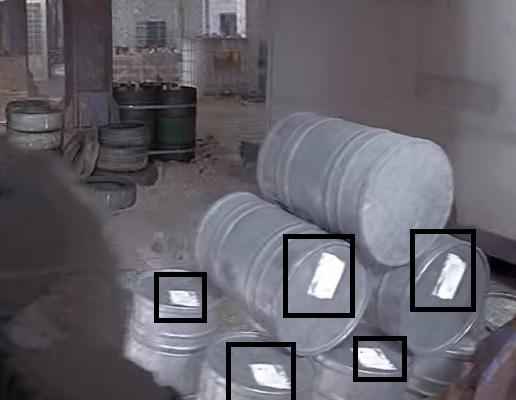 You can see in this image that the same 3D asset was used, a barrel with a sticker that has a missing corner. This repeating texture on a repeating asset indicates it is a rendered 3D world.