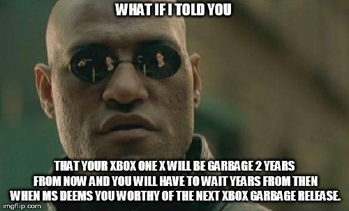 To be fair the One X really isn’t garbage. It’s great, if you’re a peasant. It’s also the only place to play some of the older Xbox exclusives.