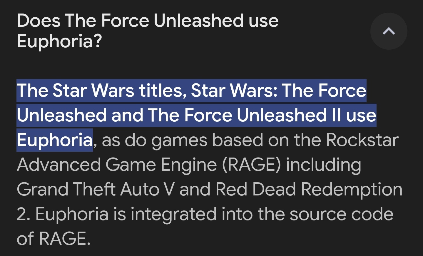PS: i searched and yes,force unleashed 1 and 2 ended up using euphoria
