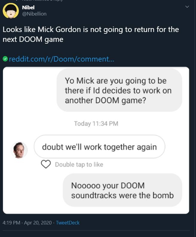No wonder his Eternal soundtrack was bland, generic and unispired compared to his awesome DOOM (2016) work. I fail to recall a single riff from Eternal whereas BFG Division alone is forever etched into my mind.