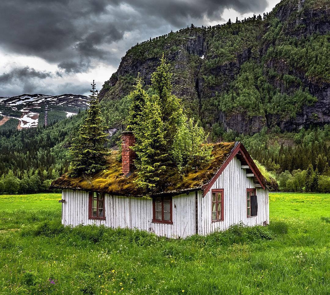 An Abandoned Woody cabin, Hemsedal Norway. Photo by Europe Trotter. Notice how the roof is all but caved in.