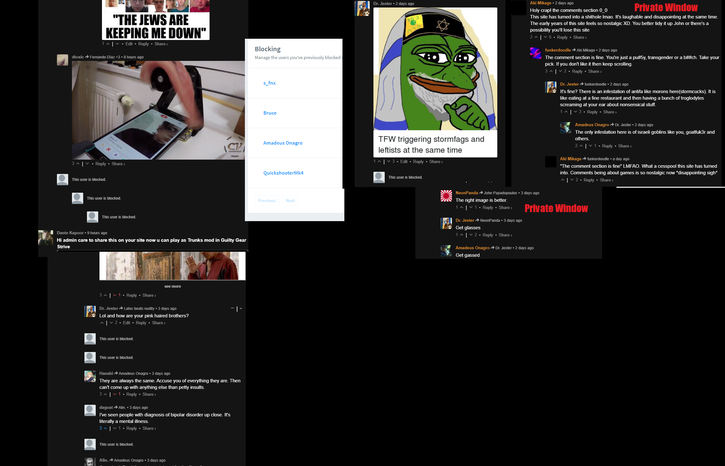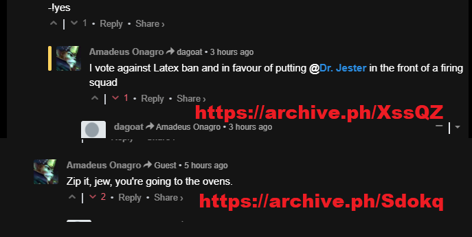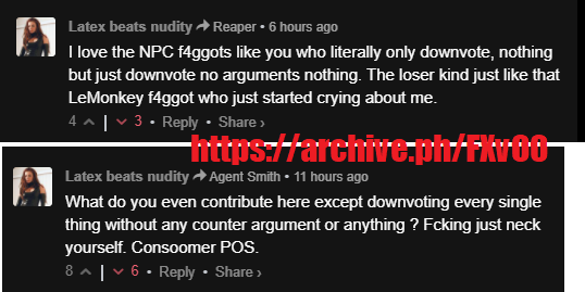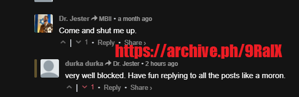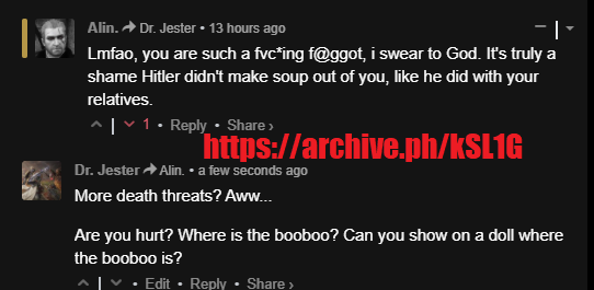 1. I agree, blocking them is a good alternative(I have them blocked), the problem begins when I want to share something from the website and I have to add a warning not to check the comments because there are some absolutely crazy spergs here. Plus, if we go with known history, OAG lost his disqus service because of people like them. I stopped sharing links to your website because of that.