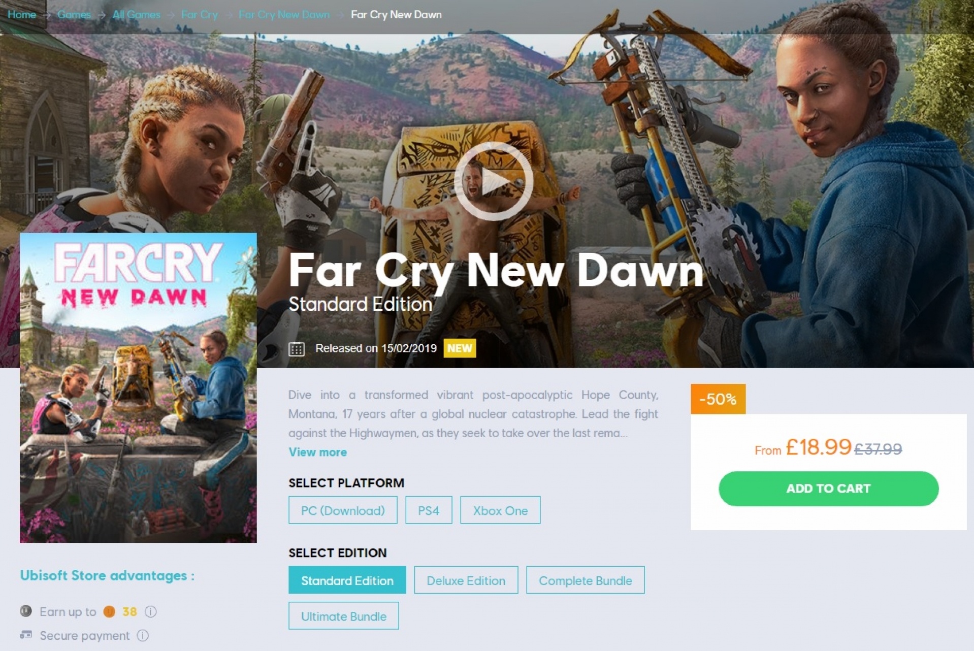 I know this isn’t worthy of getting that much attention, but UBISOFT is having a “Spring Sale” on their store. And guess what, FAR CRY NEW DAWN is currently selling for less than 50% of the original listed price.
