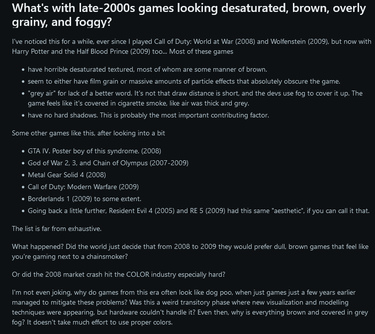 I love many 2000s games, but the late 2000s had some of the ugliest games ever made in the history of gaming.