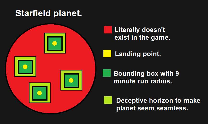 1. People have asked how you can see the planet then when you want to land. Starfield is not like No Man’s Sky where you literally do a full landing from far away. Starfield has these pop-up boxes during landing and transitions that obscure the fact you’re not landing on a planet, but on a square.